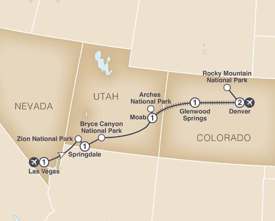 Tour Highlights: 12 Meals, 7 Nights' Accommodations (Including 2 Nights in Las Vegas), Explore Utah's Canyonlands and Red Rocks by Open-air Tram Through Zion National Park, See the "Pink Cliffs" of Bryce Canyon Park and the Vividly-colored Rock Formations - "Hoodoos", Tour Arches National Park with the Largest Concentration of Stone Arches in the World, Travel Aboard the Rocky Mountaineer Train in Silver Leaf Class from Moab to Glenwood Springs Along the Colorado River and Passing Red Rock Formations, Desert Cliffs and Canyons (Silver Leaf Class Seating Features Spacious, Reclining Seats and Oversized Glass-Dome Windows), Spend Another Day on the Rocky Mountaineer Crossing the Continental Divide and Travel the Six-mile-long Moffatt Tunnel, Visit Rocky Mountain National Park with Elevations Ranging from 8,000 to 14,259 at the Top of Longs Peak, Narrated Sightseeing Tour of Denver with Local Guide, Round Trip Airport Transfers, Round Trip Airfare When Deposited Within Promotion Window, Transportation To and From Airport (TBD) and Travelers Protection Plan